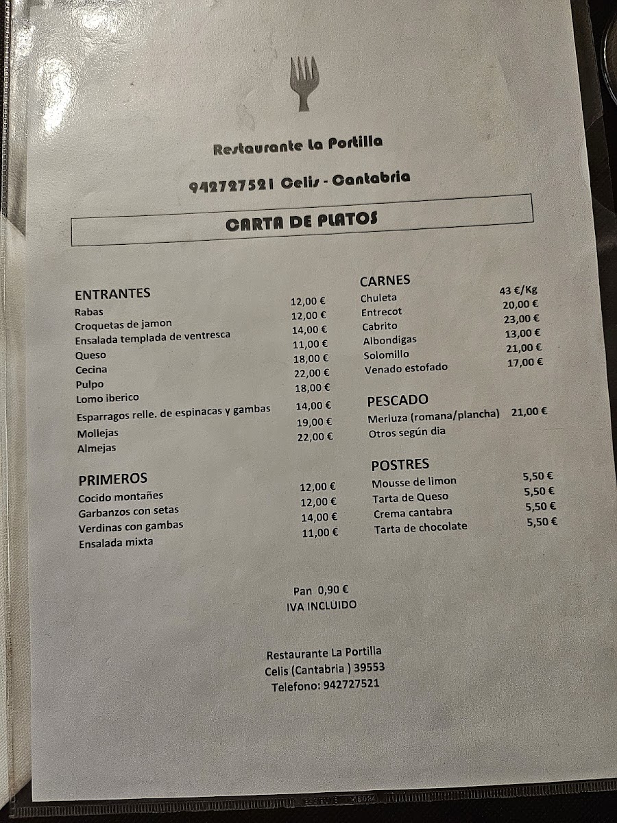 Restaurante La Portilla Menu